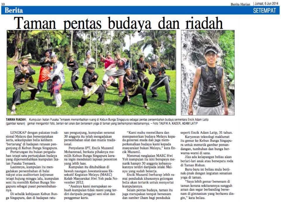 That day, Berita Harian featured our community programme at Singapore Botanical Gardens , where we blended tradition with togetherness — silat demonstrations, keris appreciation, and the simple joy of passing knowledge from one generation to the next.